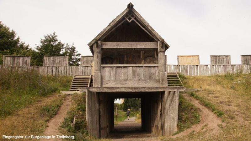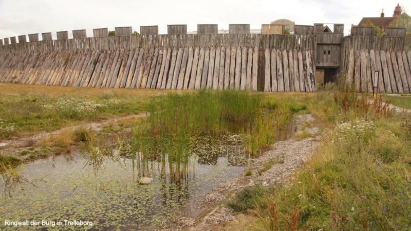 Als ich um 6 Uhr duschen gehen will, fehlt die Eintrittskarte. Karl-Josef hört mich, sucht in seinen Sachen und findet auch die Karte. In den Sanitäranlagen fällt mir eine Verhaltensanweisung auch in deutscher Sprache auf. Im letzten Satz folgt ein Danke für die „freundliche Kollaboration“. Haben wir denn immer noch Krieg, frage ich mich. Für uns ist der Begriff ja sehr negativ besetzt. Auf gehts nach dem Frühstück in die Innenstadt von Trelleborg, in der es die einzige Palmenallee Schwedens gibt. 1984 wurden die ersten von heute 100 Palmen aus Spanien angepflanzt, die sich im Winter im Palmenhaus drängen. Trelleborg wurde 1257 zur Stadt ernannt. Der Heringshandel in der Ostsee spielte eine wichtige Rolle. Die Malmöer wollten die Konkurrenz loswerden und beklagten sich so lange beim König in Kopenhagen, bis König Christian im April 1619 den Klagen nachgab, die Stadtrechte und das Recht der Kaufleute und Handwerker ihren Beruf auszuüben, entzog. Erst 1867 erhielt es die Stadtrechte zurück. Trelleborg baute den Hafen aus und wurde als zweitgrößter Hafen Schwedens zu einer Wiege der Speditionsbranche mit einem jährlichen Umschlagsvolumen von über 10 Millionen Tonnen. Die Stadt hat ihren Namen nach der gleichnamigen Wikingerburg. „Trelleborgen“ kommt aus dem Dänischen, „trelleborgar“ gleich Ringburg. Die von uns auch aufgesuchte Ringburg hatte einst einen Durchmesser von 140 m. Ich entdecke im hinteren Teil des Burggeländes auch noch eine nachgebaute Wikingeransiedlung mit zwei, die Jahrhunderte wohl überlebenden, Wikingern in ihren Bärenhäuten. Vor der Burgbesichtigung haben wir mithilfe des Rechners des Touristenbüros nach Übertragen unserer Blogs auf einen Stick es geschafft Ina die neuesten Nachrichten zu senden. Der kostenlose WiFi im Büro war überfordert. 14:30 Uhr haben wir endlich Malmö erreicht und fragen uns zum malerischen Stadtkern durch. Jürgen kauft noch schnell einen Ersatz für den mir abhanden gekommenen Campingsitz mit der Bemerkung, ich sei mit meiner Vorliebe für Bänke und Tische ja schon zu einem Saloncamper geworden. Tatsächlich kann ich das Dreibein noch am selbigen Abend gut gebrauchen. Dann picknicken wir vor den alten Fachwerkhäusern und trinken anschließend noch einen Kaffee.