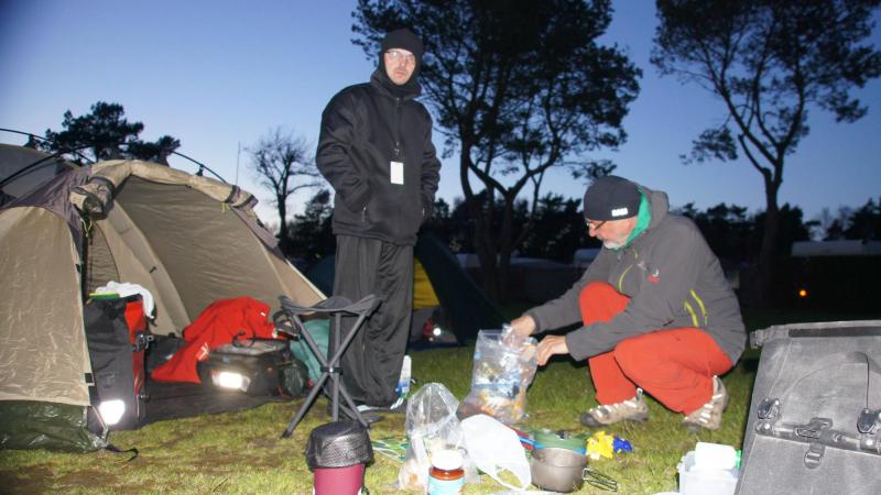 Da ich es beruflich gewohnt bin, in lärmgefährdeten Bereichen (in Kraftwerken) eine sogenannte „persönliche Schutzausrüstung“ (PSA) zu tragen, habe ich mich gut an Ohrstöpsel (sog. „Ohropax“) gewöhnen können. So nutze ich diese auch auf meinen Reisen, um Störgeräusche bei der Nachtruhe möglichst auszublenden! So auch in der letzten Nacht. Dennoch treibt es Männer im fortgeschrittenen Alter durchaus des Nachts, eine zuvor köstlich vereinnahmte Erfrischung wieder loswerden zu wollen. Mein Zeltnachbar machte sich hierzu so deutlich bemerkbar, dass auch ich trotz Stöpsel im Ohr wach wurde. Einmal wach verspürte ich sogleich ein ähnliches Verlangen und schälte mich aus dem warmen Schlafsack. Nun muss man erst mal aus dem Innenzelt raus, dann im Außenzelt bereitstehende Schuhe anziehen. Als Karl-Josef und ich dann – mit Stirnlampen bestückt – vor das Zelt krochen, trauten wir unseren Augen nicht. Eine von Heiners Vordertaschen und mehrere Tüten lagen in einem Umkreis von ca. 30 m verstreut auf unserem Zeltplatz. Wir rieben uns erst einmal unsere verschlafenen Augen. Dass Heiner die Sachen abends nicht ordentlich ins Zelt gepackt hatte, konnten wir ausschließen. Also muss ein Tier sich über die Sachen hergemacht haben. Aber welches Tier ist in der Lage so schwere Packtaschen aus dem Zelt zu ziehen? Dem Gedanken von Karl-Josef, dass es ein Waschbär sein könnte, konnte ich mich nicht anschließen. Nun, wir haben die Sachen wieder in Heiners Zelt zurücksortiert und verkrochen uns wieder in unser Zelt. Diesmal habe ich die Ohrstöpsel vorsichtshalber raus gelassen, um weitere Angriffe hören zu können. Nach kurzer Zeit raschelte es im Vorzelt und wir machten uns laut bemerkbar und hörten, wie das Tier flüchtete.
