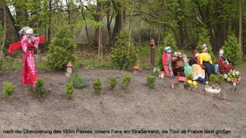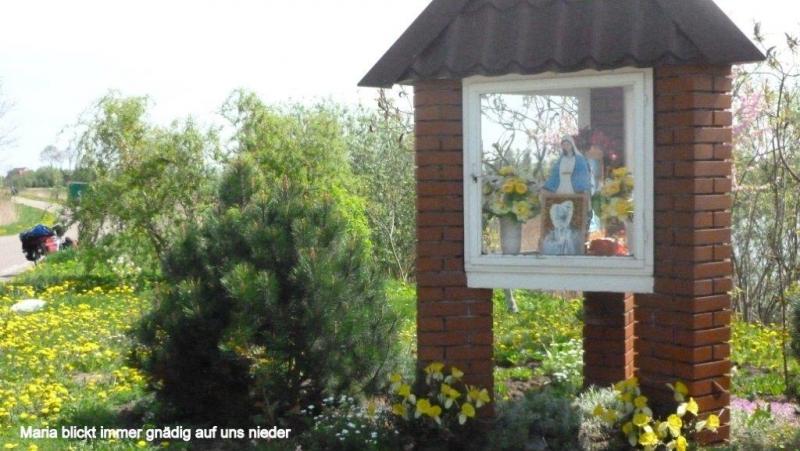 6:15 Uhr aufstehen! Nachdem es nachts – wie von der Campingbesitzerin vorausgesagt - kalt und regnerisch war, kam um 9:15 Uhr die liebe Sonne durch die Wolken. Als wir uns um 11:00 Uhr von der so freundlichen Familie Stupkiewicz aus Stegna – dem Tor zur „Frischen Nehrung“ – verabschieden, erfahren wir, dass um 10:30 Uhr eine Fähre von einem der letzten Orte auf der „Frischen Nehrung“ nämlich Krynika Morska (Hahlberg) nach Frombork (Frauenberg) abfährt. Wir hätten ein gutes Stück abkürzen können, schade! Nachdem es zunächst sehr warm war, sahen wir von Westen eine bedrohliche Gewitterfront herannahen. Wir fuhren fluchtartig weiter, die schwarze kalte Front stets im Nacken. Wie ein Wunder löste sich die nasskalte Gewitterpranke plötzlich auf. Statt Regen schickte sie uns Gott sei Dank nur einen eiskalten Ostwind. Wir fuhren durch wunderbare Auenlandschaften und hörten überall die Frösche quaken. Im 2. Teil des Tages ging es leider an einer kilometerlangen Straßenbaustelle vorbei. Nicht nur eine hohe Anzahl von Schlaglöchern, sondern auch eine Staubwolke nach der anderen, wenn uns LKWs entgegenkommen oder überholen. Trotzdem haben wir den Eindruck, dass die LKW-Tatra-Fahrer besonders langsam und rücksichtsvoll an uns vorbei fahren. Die Landseite der „Frischen Nehrung“ ist sehr hügelig, was wir nicht nur an den langen steilen Auffahrten spüren, sondern auch wenn wir kilometerlang Abfahrten haben, wohlwissend, danach geht es wieder hoch! Erst um ca. 16:00 Uhr erreichten wir eine größere Ortschaft, in der wir endlich ziemlich erschöpft in einem Restaurant essen gehen konnten. Dort erhielten wir dann (per Mail) die hoch erfreuliche Nachricht, dass unser lieber Karl-Josef doch kurzfristig wieder zu uns stoßen wird. Wir waren natürlich erleichtert und froh, dass er grünes Licht vom Arzt fürs Weiterfahren bekommen hat. Gut gestimmt fuhren wir daher unseres Weges und kamen nach fast 90 km in Frombork (Frauenburg) auf einem Campingplatz an. Auf dem Weg dorthin hatten wir aber noch 183 Höhenmeter zu erklimmen. Auf dem Campingplatz trafen wir eine aus der Nähe von Fulda kommende Gruppe an, die mit drei Traktoren und drei Wohnwagen rd. 1.800 km seit 01. Mai unterwegs waren mit dem Ziel Kaliningrad. An der russischen Grenze wurden sie allerdings abgewiesen, da die Traktoren nicht als Zug- sondern als Arbeitsmaschinen angesehen wurden. Die Enttäuschung der Gruppe war natürlich groß! Abends saßen wir auch noch mit einem Dresdener zusammen, der während seines Urlaubs eine 2-wöchige Fahrradtour macht und aus Kaliningrad kam. Außer mit Hunden, die aus Gehöften der durchfahrenden Dörfer herausgeschossen kamen und ängstliche Radfahrer anfielen, hat er überwiegend gute Erfahrungen gemacht.