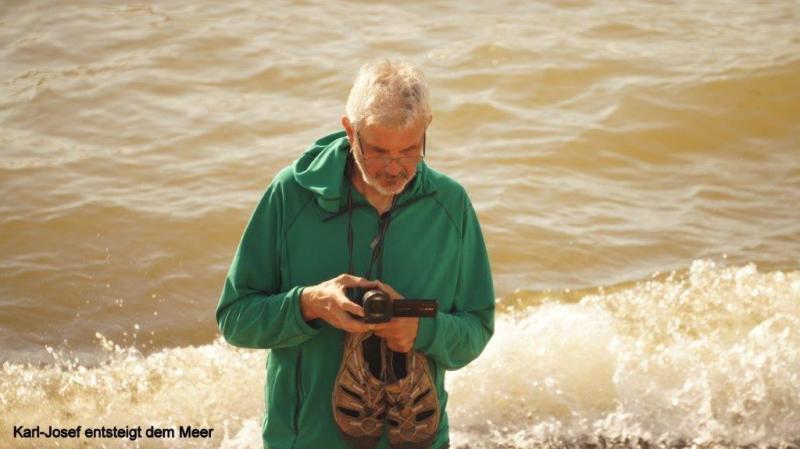 Unter dem Spitzdach standen 11 Betten. Schneewittchen und die 7 Zwerge fehlten. Wir drei verbrachten eine behütete Nacht, natürlich nur in 3 Betten. Also hinkt der Vergleich. Trotzdem waren wir sicherlich genauso glücklich wie Schneewittchen, als sie im Märchen überraschend bei den 7 Zwergen eine Unterkunft fand. Hatten wir doch ein Haus mit Sauna und allem was dazu gehört für uns drei alleine. Unten kochte am Morgen, für uns, die wir nur das Camperleben gewohnt sind, ein Heißwassergerät im Handumdrehen das Wasser für den Nescafé. Genüsslich konnten wir frühstücken, hatten schnell alle sehr schön trockenen Sachen aus Sauna, Wohn- und Schlafzimmer zusammengesucht und gepackt. Jürgen versendete über sein Smartphone die am Vorabend vorbereiteten Mails für den Blog. Wir starten bei 14° C Außentemperatur. Nachdem der Morgennebel sich verzogen hatte, schien jetzt langsam die Sonne und es wurde immer wärmer. Das ließ uns hoffen, nach dem zweiten Regentag unserer gesamten Tour (!!!) wieder eine schöne Strecke in der Sonne fahren zu können. Plan war, nach 30 km in einem am Weg abseits liegenden, vielversprechenden Badeort, Pavilosta, essen zu gehen. Kaum waren wir von der Straße abgebogen, kam uns das Ehepaar entgegen, dass wir in Liepaja an der Fähre getroffen hatten. Sie berichteten von einem verschlafenen Dorf, dass sich wie viele hier an der Küste auf den Saisonbeginn Mitte Juni vorbereitete. Also nach kurzer Überlegung und Checkup unserer Vorräte beschlossen wir an einem „schönen Ort“ ein berühmtes „Jürgensüppchen“ zu essen. Nach 5 km machte mich ein Hinweis mit Zeltsymbol auf eine Wiese 300 m neben der Straße aufmerksam. Unmittelbar über einer Steilküste lud uns ein Wiesengelände mit Bänken und einem Tisch im Blockhausstil zum Verweilen ein. Eine phantastische Aussicht auf die See und ein heißes Süppchen, mit allem, was die Lebensmitteltasche zu bieten hatte, wurde zusammengerührt und ergab mit Brot und Käse ein 10-Punkte-Menü – die Aussicht mit eingerechnet. Im Ort Jûrkalne füllten wir unsere Vorräte für Abendessen und Frühstück des nächsten Tages auf und fanden bald den Zeltplatz Zaki. Ein wunderschöner Naturzeltplatz, auch wie unser Haltepunkt heute Mittag, direkt an der Steilküste. Ein Besitzer war nicht zu finden. Hinweise auf Rufnummer oder Anmeldung fehlten. Wir packten mein völlig nasses Zelt vom vorgestrigen Regen aus. Ein vom Strand kommendes Ehepaar aus Deutschland begrüßte uns freundlich. Sie besaßen ein Haus in der Nähe und kannten den Campingplatzbesitzer und versprachen, ihn zu informieren. Die Sonne hatte nach einer knappen Stunde ihr Werk vollbracht und nicht nur das Zelt getrocknet, sondern sie konnte auch uns durch ihre Wärme erfreuen. Ein anschließender wunderbarer Sonnenuntergang beim Abendessen ließ uns den Regen vergessen. Ein Sonnenuntergang hat immer auch etwas Mystisches und genau diese Frage stellte uns Heiner beim Abendessen, was wir denn unter Mystik verstehen würden. Die Wiedergabe der Diskussion würde unser Tagebuch sprengen und so möchte ich nur mit Fotos vom Sonnenuntergang die Unfassbarkeit eines Geschehens festhalten und euch mit den anschließenden Fotos teilhaben lassen an einem unbeschreiblichen Phänomen.