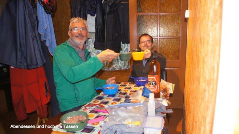 Zurück am Zelt, den Blick gegen den Himmel und zu den Fahnen des Campingplatzes verrieten einen schnellen Wetterwechsel. Mit Wolken und Nord – Ostwind mussten wir uns nun auseinandersetzen. Die Zelte sind nach einem guten Frühstück schnell abgebaut. Um 9:45 Uhr starten wir Richtung Riga. 80 km Tagespensum sind geplant. Ich ahne: zum Rad fahren „ist heute kein Wetter“! So kommt es dann auch. Nach 20 km und einer Stunde auf dem Sattel heißt es Regenkleidung anlegen. Zunächst nieselte es. Dann kam der nicht heftige, aber beständige – typische – Dauerregen in Streifen. Nach weiteren 25 km suchten wir im kleinen Hafenort Mersrags ein Restaurant und wurden in einem etwas abgelegenen Hotel fündig. Das Essen war gut. Die Zeit wurde mit Blogschreiben, Mails absenden (das Restaurant hatte WiFi) für unsere Leser und warten auf besseres Wetter verbracht. Das kam aber nicht. Wie gesagt „es war kein Wetter heute“. Insbesondere nicht für Radfahrer. 60 km im Regen fahren. Was fühlt und denkt man(n)? Anfangs die Frage, ist die richtige Kleidung zur rechten Zeit angelegt? Ja. GoreTex-Socken (habt ihr sicher schon von gehört – wenn nicht, schlagt nach) in Sandalen, um das Wasser wieder herauslaufen zu lassen, halten die Füße trocken und warm. Beinlinge und Radlerhose wärmen den Körper und werden von der absolut wasserdichten Regenhose gegen Außeneinwirkungen geschützt. Am Oberkörper Funktionsunterwäsche, Softshell- und absolut dichte Hardshellkleidung vervollständigen den Regenschutz. Das Wichtigste ist dann noch der Radlerhelm mit einer darunter befindlichen Mütze und ein wasserdichter Überzug. Die Hände sind ein Problem. Handschuhe sind meist nicht wasserdicht und da heißt es immer Finger bewegen und nicht steif werden lassen. Das alles hält den Regen ab! Nun, hört sich gut an – ist es bis zu einem gewissen Grad auch. Nur der Körper erhitzt sich natürlich bei der Fahrt bei leichtem Rückenwind und 20 km/h Geschwindigkeit. Irgendwann hat die Funktionswäsche und Softshellschicht ihre Aufnahmekapazität erreicht und der kühle Fahrtwind von außen die Hardshellschicht und damit alle Isolierschichten überwunden. Schneller treten, nicht stehen bleiben und nicht auskühlen ist angesagt. Nach 60 km stellte Jürgen in der Nähe eines möglichen Campingplatzes mit kleinen Blockhäusern die Frage: weiterfahren oder einkehren? Unter dem Dampf der noch warmen Innenschichten und einer positiven Einschätzung der Leistungsfähigkeit entschied ich mich wie Heiner zum Weiterfahren. Heiner meinte, wir können auch noch bis Riga fahren – nochmal 70 km. Ich protestiere laut. Nun fuhren wir dem am Vortag bei gutem Wetter festgelegten Ziel entgegen. Bei mir sank nach 70 km die Motivation. Die Radfahrbedingungen auf einer immer verkehrsreicher werdenden Küstenstraße mit teilweise tiefen Fahrrillen sind ein eigenes Thema. Erste Versuche, nach 80 km eine Hütte zu finden, schlugen fehl. Es regnete beständig weiter. Dann wurden wir fündig. Verdeckt vom überall vorhandenen Kiefernwald standen Ferienhütten wie sie hier in Lettland sehr häufig anzutreffen sind. Der Sohn der Besitzerin zeigte uns ein Häuschen mit WC, Dusche, Küche und 4 Schlafmöglichkeiten. Wir stimmten zu. Draußen regnete es unentwegt weiter. Mit Hilfe unseres Vermieters wurden Schnüre zum Trocknen unserer Unter- und Oberkleidung in Küche und Dachgeschoss gespannt. Nach dem heißen Duschen gab es Nudeln mit Rindfleisch und wer noch Hunger hatte, aß das wunderbare dunkle lettische Brot mit Kümmel und Salami bzw. Heiner Käse, da in seinem Kauwerk etwas gefährlich wackelt (er verliert wahrscheinlich einen Milchzahn). Der Tag klang trotz allem gut aus. Ich verrate nicht, was wir getrunken haben. Ihr könnt ja mal Mutmaßungen in unseren Blog schreiben. Gute Nacht.