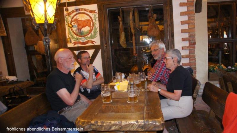 Der Tag beginnt stressfrei und ich kann meinen letzten Blog abschließen. Während ich dann eine Handwäsche mache und die Geschichte Tallinns erkunde (siehe Anhang!), machen sich meine Jungs schon zur Erkundung des Ortes auf. Kurz vor Mittag folge ich auf den Platz der Freiheit mit dem Denkmal für den Unabhängigkeitskrieg, besuche die Kirche am Platz und lese am Denkmal nochmal ausführlich die Geschichte des Freiheitskampfes gegen die Russen. Nach einem gemeinsamen Mittagessen besuche ich dann noch den Domberg mit der Domkirche zu St. Marien (erbaut 1233), Hauptsitz der evangelischen Kirche Estlands mit den Wappen der einstigen Adligen. Dann erblicke ich auf dem Weg zur Alexander-Newsky-Kathedrale das 1862 erbaute herrschaftliche Haus des Marschalls Alexander von der Pahlen (1819-1895), der die Eisenbahnlinie von Tallinn nach St. Petersburg gebaut hat. Ferner komme ich an der Domschule zu Reval vorbei, die von 1319 bis 1939 existiert hat. Die russisch-orthodoxe − 1900 als Zeichen des russischen Herrschaftsanspruchs eingeweihte − Kathedrale steht heute in kleinerer Version als Basilius-Kathedrale auch in Moskau. In der Kathedrale haben mich gerade sehr alte Ikonen in ihrer Ausdruckskraft, Farbkomposition und Bildaufteilung überwältigt. Gerade diese herausragenden Kunstwerke finden sich aber nicht als zu kaufende Drucke, so dass man über den künstlerischen Wert der Ikonenmalerei schnell einen voreiligen Eindruck gewinnen kann. Leider konnte ich diese − von einem Mönch streng überwacht! – nicht fotografieren. Nach diesen noch lange nachwirkenden Eindrücken konnte ich noch eine Folkloretanzveranstaltung miterleben. Als ich dann auf dem Marktplatz noch Kinderchöre mit insges. ca. 70 Kindern und Jugendlichen erleben durfte, hatte ich an diesen − noch bis Freitag andauernden Altstadttagen − wirklich viele Eindrücke gewonnen. Als ich dann um 18:00 Uhr meine Jungs im Hostel traf, teilte mir Karl-Josef mit, dass uns das eigentliche Highlight noch um 19:00 Uhr bevorstehe. Man habe sich nämlich mit dem Ehepaar aus Hilden wieder getroffen und zum Essen verabredet. Jürgen wollte noch die Fähre buchen und wir kehrten zusammen mit dem Ehepaar, das nach 1200 km mit dem Fahrrad durch Wind und Wetter noch taufrisch aussieht, in einem Brauhaus bayrischer Prägung ein. Später kommt Jürgen nach und wir hatten mit dem Erzählen über unsere Urlaubserlebnisse – vor allem über das Verlegen und Verlieren − viel Spaß. Ewald referiert u. a. über den Import und Export der Hanse und welche Häuser für die deutschen Kaufleute in Tallinn gebaut wurden, Jürgen und Ewald schweben dann in unerreichbaren Sphären der Maschinenbautechnik und irgendwann fragte ich mich, warum Herr Meermann bereits jetzt im zarten Alter von 78 Jahren die Leitung der Firma mit zahlreichen Niederlassungen an seine Tochter abtreten musste und wie es bereits so früh zu dieser wahrhaft tragischen Familientragödie zum Sturz eines Titanen der deutschen Wirtschaft kommen konnte. Hat dabei die glücklich ausschauende Königinnenmutter vielleicht ihre Fäden gesponnen? Gegen 10:30 Uhr trennten wir uns ganz herzlich mit dem Versprechen, mit den Blogs pünktlicher zu werden und der Verabredung eines Nachtreffens im September oder spätestens Oktober.